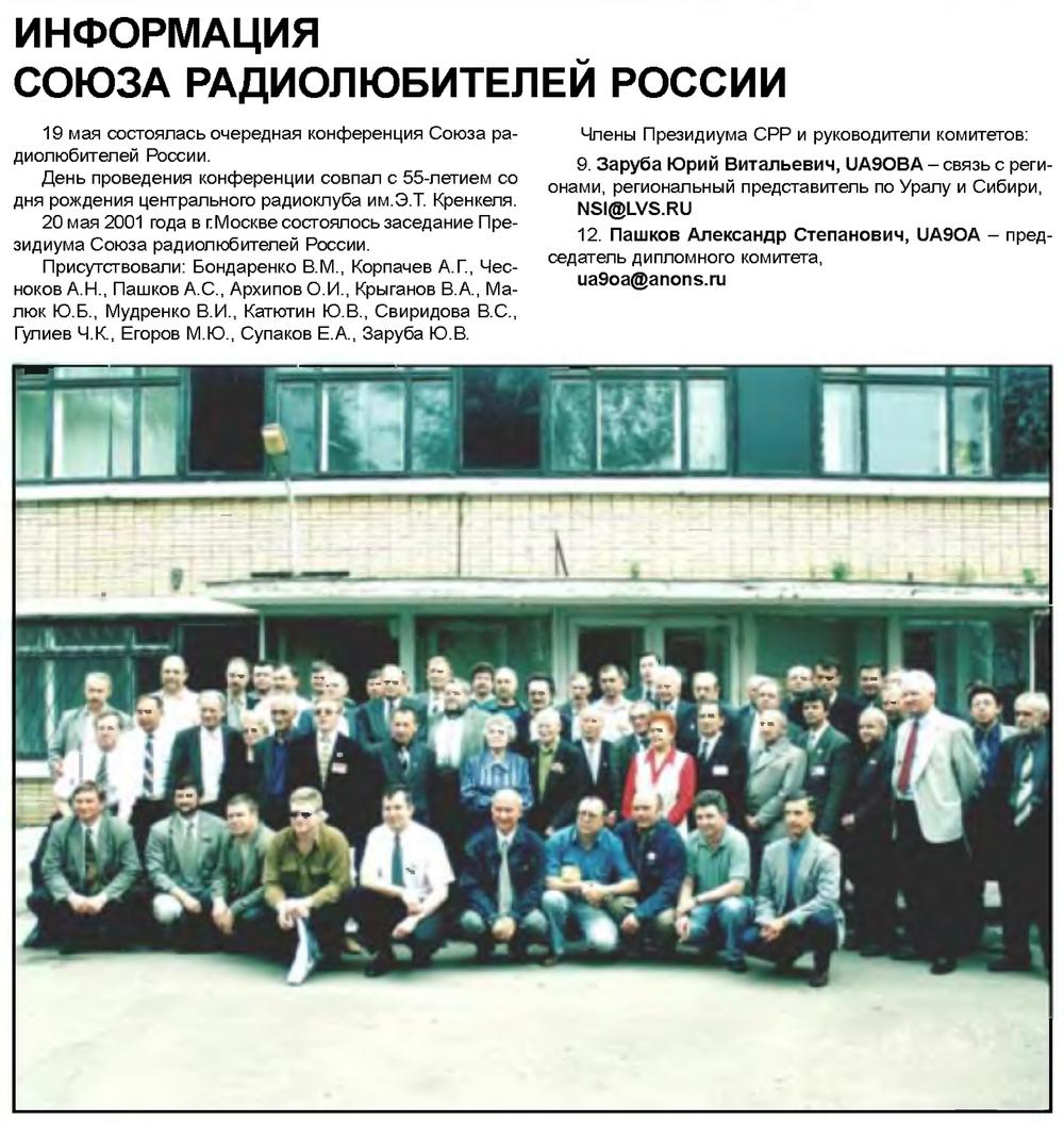 Радиолюбитель КВ и УКВ №06 2001 Пашков А.С. UA9OA, Заруба Ю.В. UA9OBA на конференции СРР