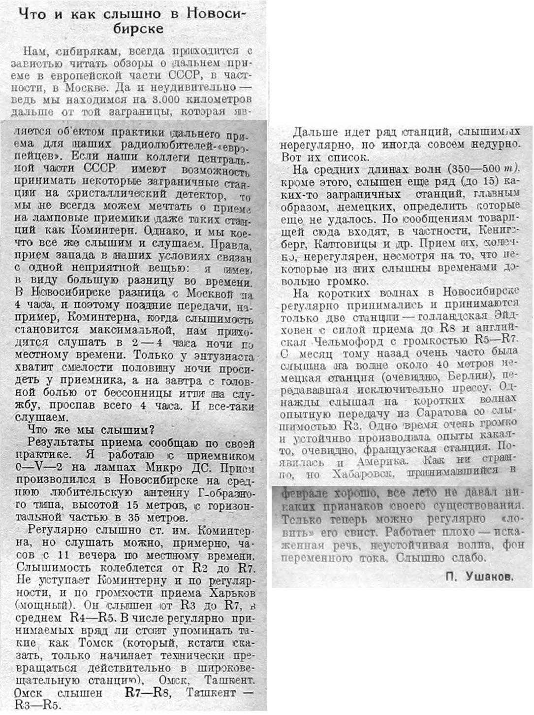 Радиолюбитель 09 1929 Что и как слышно в Новосибирске